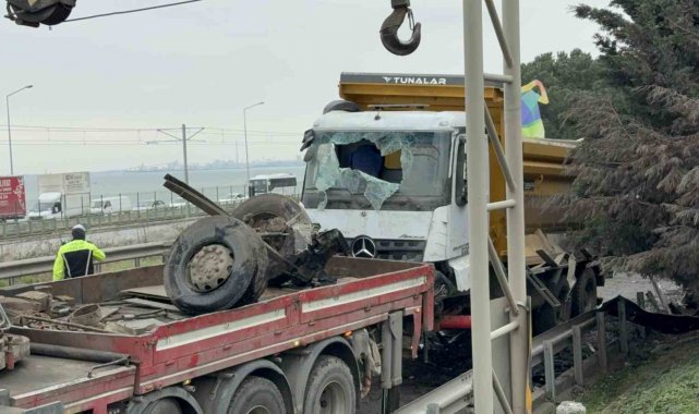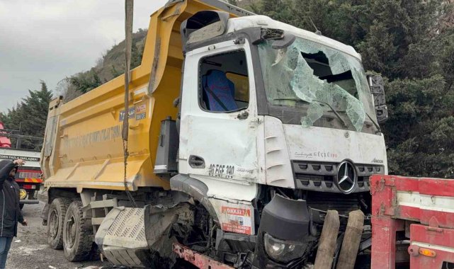 Hafriyat kamyonu refüje daldı, sürücü yaralandı