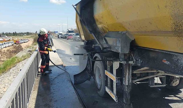Hafriyat kamyonunun lastiğinde çıkan yangın korkuttu