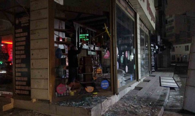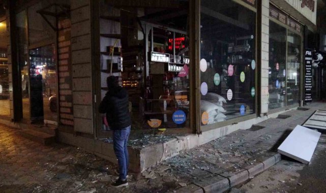 Malatya'da hafriyat kamyonun lastiğinin patlaması sonucu bir iş yerinin camları zarar gördü.