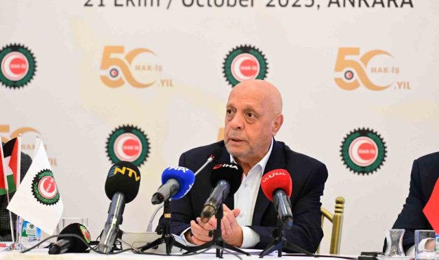 Hak İşçi Sendikaları Konfederasyonu (HAK-İŞ) Genel Başkanı Mahmut Arslan, "7 Ekim'den sonra Filistin ve Gazze'de yapılan katliamlara, soykırıma, dünyanın gözü önünde insanlığın katledilmesine karşı HAK-İŞ, ilk andan itibaren net bir tavır ortaya koymuştur. Bu tavrımız bugün de yarın da devam edecektir" dedi.