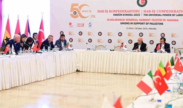 HAK-İŞ Konfederasyonu 50'inci kuruluş yıl dönümü çerçevesinde 'Uluslararası Hareket Filistin'in Yanında' temasıyla toplantı gerçekleştirdi. Toplantıya 22 ülkeden 23 konfederasyonu temsilen 45 uluslararası sendikacı katılım sağlarken, Filistin'in özgür bir ülke olarak dünyada yer alması gerektiği vurgulandı.