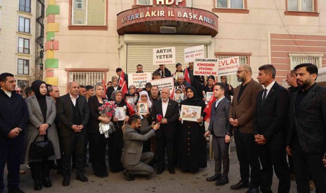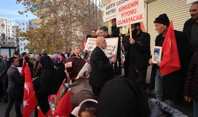 Çocuklarının terer örgütü PKK tarafından dağa kaçırıldığını belirterek bin 966 gündür eski HDP İl Başkanlığı binası önünde oturma eylemi yapan aileleri ziyaret eden HAK-İŞ Konfederasyonu ve Hizmet-İŞ Sendikası Genel Başkanı Mahmut Arslan, anne ve babalara karanfil hediye etti. Arslan, bin 966 gündür terör sevicisi partinin önünde evlat nöbeti tutan aileleri ziyarete geldiklerini, onların evlatlarını zorla dağa kaçıran zihniyete karşı verdikleri mücadeleyi her zaman takdirle, teşekkürle andıklarını söyledi. Arslan, devletin ve güvenlik güçlerinin terörle mücadelesini bütün gücüyle sürdürürken, terörle mücadelede dünyada örnek teşkil edecek bir mücadeleyi de Diyarbakır annelerinin gerçekleştirdiğini belirterek, "Buradaki eylem, sıradan bir eylem değildir. 380 aile burada dönüşümlü olarak bu eylemlerini sürdürüyor, 58'i evladına kavuşmuştur. Amacımız, hedefimiz, bütün çocuklarımızın terör örgütünün elinden kurtulup annelerine teslim edilmesidir. Bunun için yapılan mücadeleyi sonuna kadar destekliyoruz" dedi.