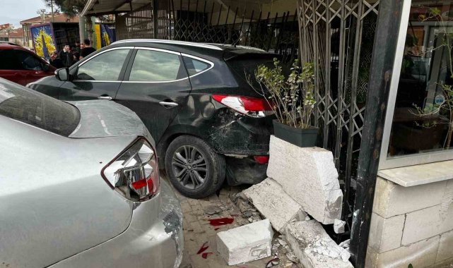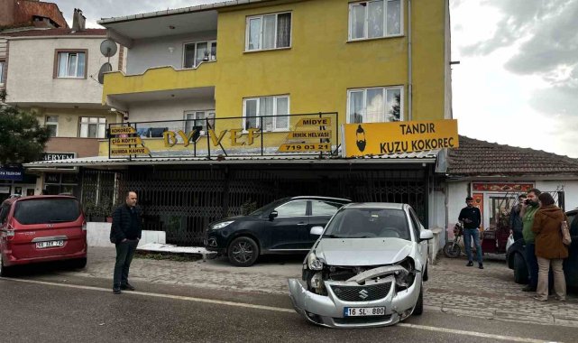 Hakimiyeti kaybeden sürücü araca çarptı, araç işyerine girdi