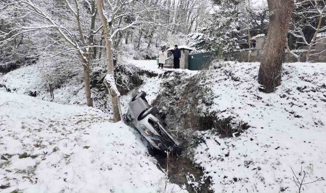 Edinilen bilgilere göre, 34 KE 2161 plakalı otomobilin sürücüsü S.K., karla kaplanan ve kayganlaşan yokuşta kontrolünü kaybetti. Savrulan araç, yol kenarındaki dereye uçarak durabildi. Kazanın ardından çevredekilerin ihbarı üzerine olay yerine itfaiye, sağlık ve polis ekipleri sevk edildi.