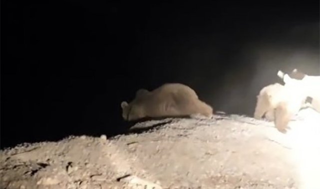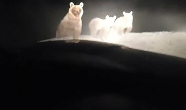 İlçede özel bir firmada çalışan operatör Serkan Noyan, akşam saatlerinde şantiyeye giderken yol üzerinde bir ayı ve yavrularıyla karşılaştı. Aracın ışığını fark eden ayılar kısa sürede bölgeden uzaklaştı. Bir süre sonra şantiye yakınlarında yeniden görülen ayı ailesinin yiyecek aradığı gözlendi.