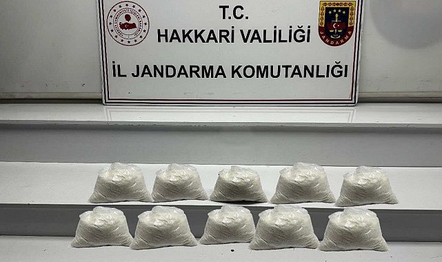 Hakkari Valiliği'nden yapılan açıklamada, İl Jandarma Komutanlığınca, uyuşturucu madde ticareti yapan şahısların tespit edilmesi ve yakalanmasına yönelik yürütülen çalışmaların devam ettiği belirtildi. Açıklamada, "Yapılan titiz çalışmalar neticesinde, Yüksekova ilçesi Cumhuriyet Mahallesi'nde N.Ö. ve İ.Ş. isimli şahısların uyuşturucu madde satışı yaptıkları yönünde bilgi elde edilmesi üzerine Narkotik Şube Müdürlüğü personeli tarafından şüpheli şahıslar uyuşturucu maddelerle birlikte suçüstü yakalanmış olup, üzerlerinde yapılan arama sonucunda 10 paket halinde toplamda 9 kilo 890 gram metamfetamin ele geçirilmiştir. Meydana gelen olayla ilgili adli tahkikata başlanılmış olup 2 şüpheli şahıs gözaltına alınmıştır" denildi.