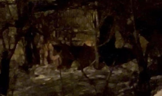 Merkez Biçer Mahallesi'ndeki Güllüreş Baba Türbesi çevresindeki ormanlık alana inen iki ayı, vatandaşlar tarafından cep telefonu kamerasıyla kaydedildi. Görüntülerde ayıların buldukları yiyecekleri yedikleri, zaman zaman başlarını kaldırarak etrafı kontrol ettikten sonra tekrar beslenmeye devam ettikleri görüldü.