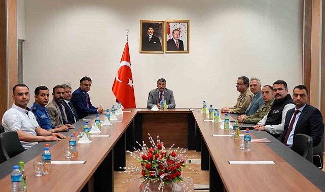 Hakkari Valisi Ali Çelik'in başkanlığında Göç İdaresi Başkanlığı Sınır Yönetimi Genel Müdürü Ozan Gazel, Yüksekova Kaymakamı Mustafa Akın, İl Jandarma Komutanı Tuğgeneral Necip Çarıkcıoğlu, Otluca Dağ ve Komando Tugay Komutanı Tuğgeneral Ufuk Hilmi Orhan, İl Göç İdaresi Müdürü Aykut Alptekin, Esendere Gümrük Müdür Vekili Mutasım Taş ve ilgili birim temsilcileri ile birlikte Esendere Gümrük Müdürlüğü'nde düzenlenen toplantıda, sınır kapısında yürütülen çalışmalar ve hizmetler ele alındı. Toplantıda, gümrük müdürlüğü bünyesinde sürdürülen faaliyetler hakkında bilgi alan Vali Çelik, personelin karşılaştığı sorunlar ve ihtiyaçlar konusunda da değerlendirmelerde bulundu. İlgili birimlerin taleplerini dinleyen Vali Çelik, hizmetlerin daha etkin ve verimli yürütülmesi için gereken hususlarda istişarelerde bulundu. Toplantının ardından katılımcılara teşekkür eden Vali Ali Çelik, tüm ekibe çalışmalarında başarılar diledi.
