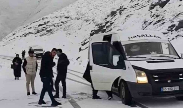Hakkari'de iki minibüs karla kaplı yolda mahsur kaldı