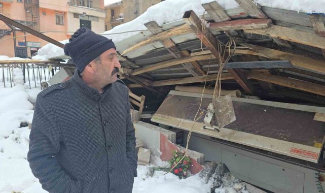 Hakkari'de iki gündür devam eden yoğun kar yağışı hayatı olumsuz etkilemeye devam ediyor. Gazi Mahallesi Avukat Muhsin Zeydan Caddesi'nde bulunan Şükrü Kurt'a ait mobilya atölyesinin çatısı, gece yarısı karın ağırlığına dayanamayarak çöktü. Üç çocuk babası Şükrü Kurt, geçim kaynağı olan atölyesinin yıkılmasıyla büyük bir mağduriyet yaşadığını belirterek, "Burası benim tek geçim kaynağım. İki milyon liralık zararım var ve ne yapacağımı bilmiyorum" dedi.
