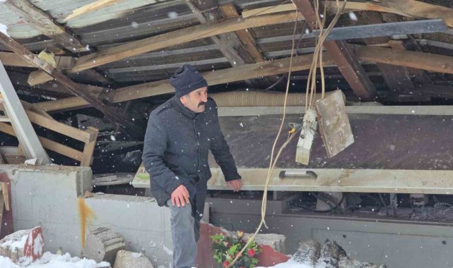 Hakkari'de 3 çocuk babası Şükrü Kurt'un sahibi olduğu mobilya atölyesinin çatısı, karın ağırlığına dayanamayarak çöktü.