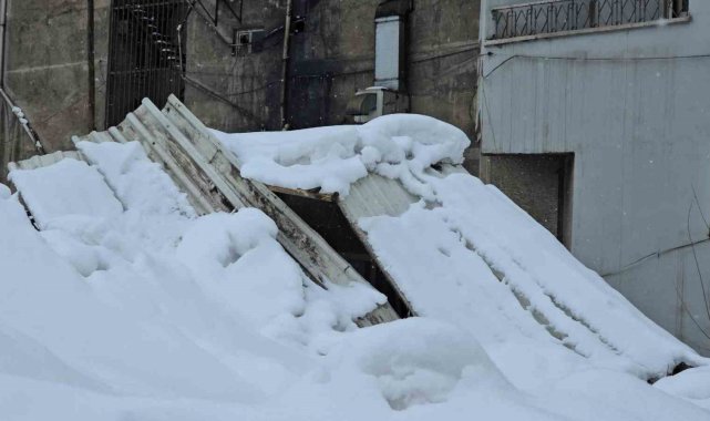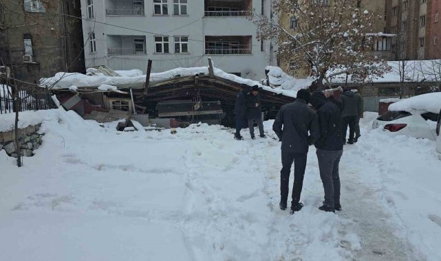 Hakkari'de karın ağırlığına dayanamayan atölyenin çatısı çöktü