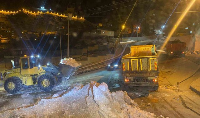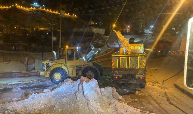 Hakkari'de etkili olan yoğun kar yağışının ardından çarşı merkezi ve ana caddelerde biriken kar kütleleri kamyonlara yüklenerek şehir dışına taşındı.
