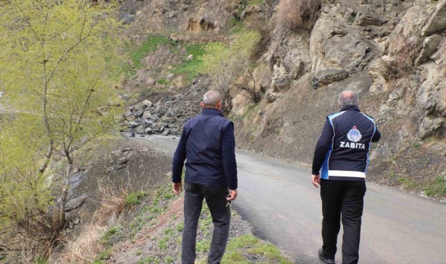 Hakkari'de etkili olan yağışların ardından yola düşen kayalar nedeniyle tehlike oluşturan güzergah için ekipler harekete geçti.