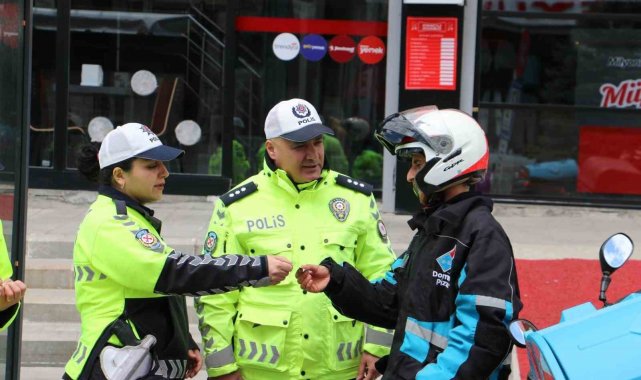 Hakkari merkezde motosikletli kuryelere yönelik denetim ve bilgilendirme faaliyeti yapıldı.