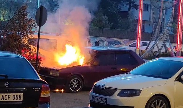 Hakkari'de park halindeki otomobilin motor kısmında yangın çıktı.