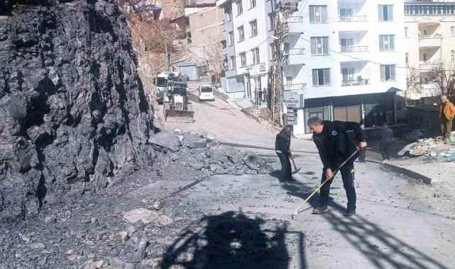 Hakkari'nin Gazi Mahallesi yolunda bulunan kayalık alandan taşların düşmesi üzerine itfaiye ve zabıta ekipleri harekete geçti.