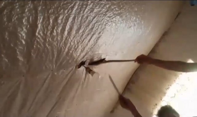 Yılanlar daha sonra mahalle sakinlerinin yardımıyla yakınlardaki dereye bırakıldı. Kerim Kaçmaz, toprak damlı evde kirada kaldıklarını belirterek, "Her gece gelen sesler bizi korkutuyordu. En son çare olarak komşulardan yardım istedik ve brandayı bıçakla delerek iki yılanı yakaladık. Derenin tamamen ilaçlanması ve temizlenmesi gerekiyor. Bu durum sadece bizim değil, tüm mahalle halkının güvenliği için önemli" dedi.