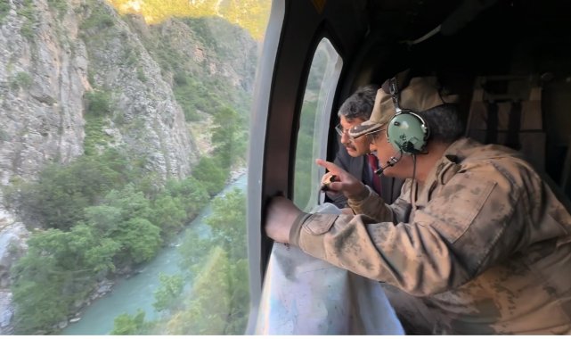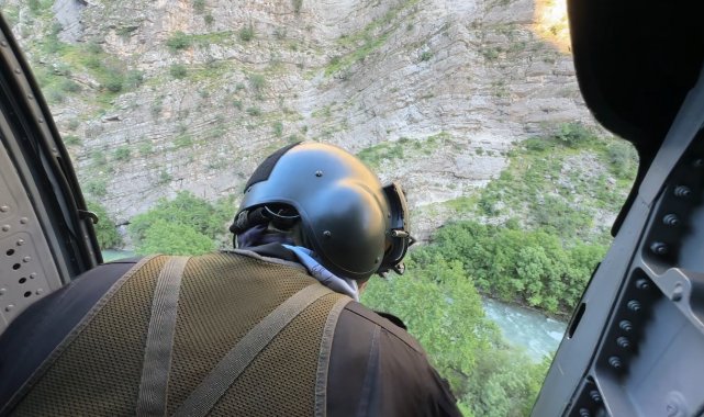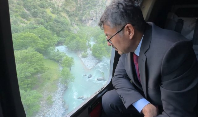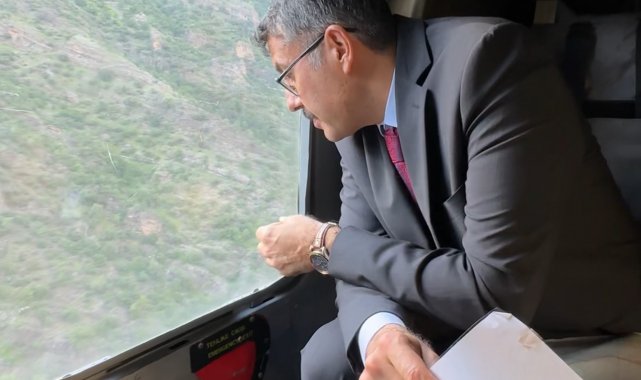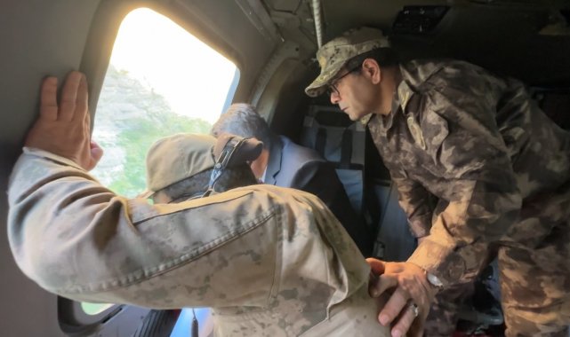 Hakkari Valisi Ali Çelik, girdiği derede kaybolan 16 yaşındaki İbrahim Necir Kom'u arama çalışmalarını havadan inceledi.