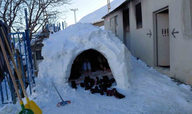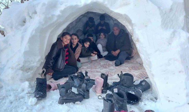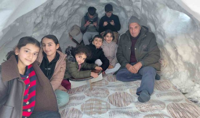 HAKKARİ (İHA) – Hakkarili Bal ailesi, evlerinin önünde biriken kardan iglo evi yaparak karı eğlenceye çevirdi.