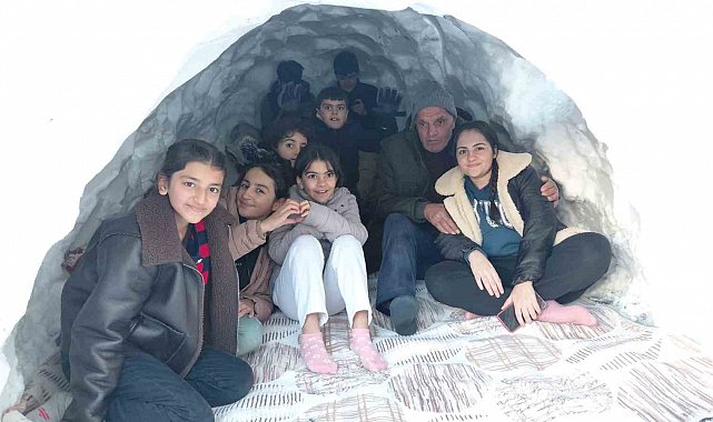 Çocuklarıyla birlikte igloda oturmanın mutluluğunu yaşan Yunus Bal, "Kar zorluklarıyla birlikte mutluluğu da getiriyor. Çocuklarımız sevinsin istedik" dedi.
