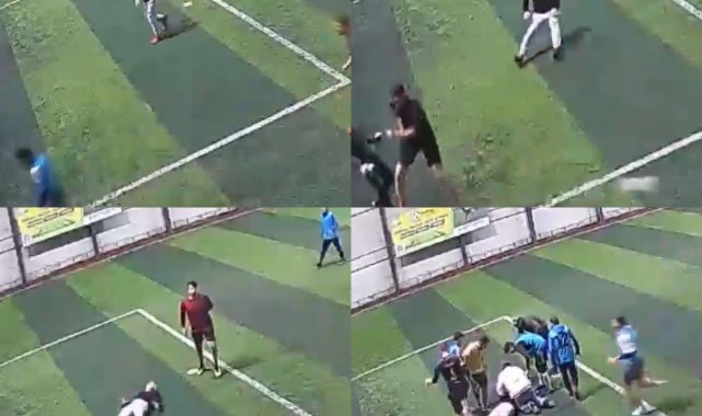 O anlar ise halı sahanın güvenlik kamerasına yansıdı. Görüntüler, kale önündeki şahsın biranda yere düşüp hayatını kaybettiği yer aldı.
