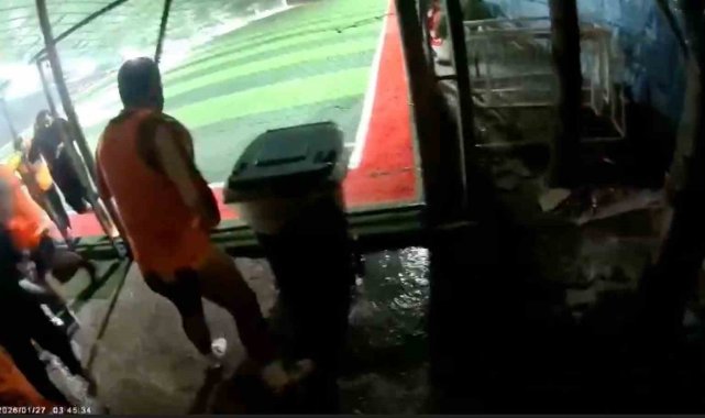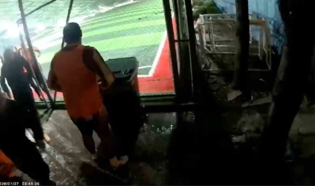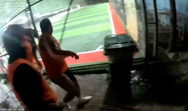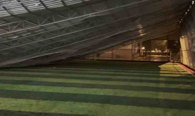 Antalya'da şiddetli fırtına sebebiyle halı sahanın çatısı çöktü. Oyuncuların maç için ısındığı anlarda kopan gürültüyle başlayan panik futbolcuların koşarak sahayı terk etmesiyle bitti. Çatının çökme anı ve futbolcuların sahadan kaçışları aksiyon kamerasına yansırken, olayda şans eseri kimse yaralanmadı.