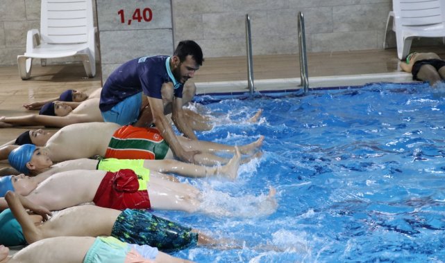 Haliliye Belediyesi Yaz Spor Okulları çerçevesinde verilen Yüzme Kursunda k...