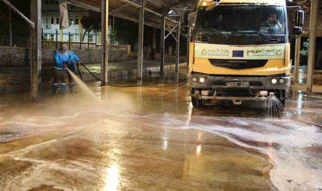 Bayram öncesi kurban satış ve kesim noktalarında gerekli hazırlıkları tamamlayan ekipler, bayram boyunca sahada aktif görev alarak çevre temizliğini sağladı. Bayramın ardından oluşabilecek olumsuz görüntülerin ve kötü kokuların önüne geçmek amacıyla başlatılan kapsamlı temizlik çalışmaları kapsamında; özellikle kesim alanları, mazgallar ve çöp konteynerleri köpüklü suyla detaylı şekilde yıkanıyor ve dezenfekte ediliyor.