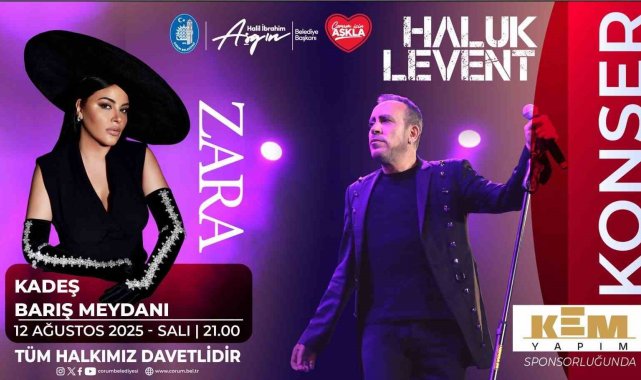 Çorum Belediyesi, kültür ve sanat etkinlikleri kapsamında unutulmaz bir konsere daha ev sahipliği yapmaya hazırlanıyor. Türk rock müziğinin güçlü sesi Haluk Levent ile Türk halk müziğinin sevilen yorumcusu Zara, Çorumlularla buluşuyor. Haluk Levent ve Zara konseri, 12 Ağustos Salı akşamı saat 21.00'de Kadeş Barış Meydanı'nda gerçekleştirilecek. Farklı tarzları ve kendilerine özgü yorumlarıyla geniş bir hayran kitlesine sahip iki usta sanatçının aynı sahnede buluşacağı gece, Çorumlulara müzik dolu unutulmaz anlar yaşatacak. Çorum'un kültürel tanıtımına katkı sunmayı amaçlayan Kem Yapım, çekimlerini Çorum'da gerçekleştirdiği ve başrollerinde ünlü oyuncular Erkan Petekkaya, Ayça Bingöl ile Ayça Ayşin Turan'ın yer aldığı, ulusal çapta ses getirmesi beklenen "Al Beni Baba" adlı sinema filminin ardından, şimdi de Çorum Belediyesi'nin ev sahipliğinde düzenlenecek bu büyük konsere sponsorluk desteği verdi.