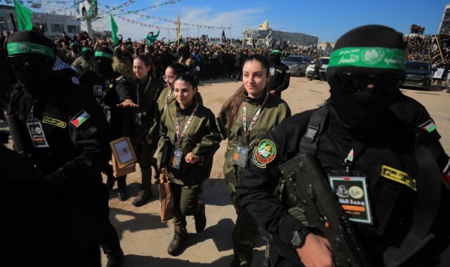 Gazze Şeridi'nde 19 Ocak'ta başlayan ateşkes anlaşmasının ilk aşaması kapsamında ikinci takas süreci gerçekleştiriliyor. Hamas'ın askeri kanadı İzzeddin El Kassam Tugayları, Gazze şehrinin kalbindeki Filistin Meydanı'nda 4 İsrailli kadın askeri, Kızılhaç yetkililerine teslim etti. Meydanda kurulan sahnede bir El Kassam Tugayları mensubu ile bir Kızılhaç yetkilisi belge imzaladı. Serbest kalan askeri üniformalı Liri Albag, Karina Ariev, Danielle Gilboa ve Naama Levy'e "hediye çantaları" verildi. Esirler, Kızılhaç aracına bindirilerek İsrail'e doğru hareket etti. Esirlerin önce İsrail-Gazze sınırına yakın bir askeri tesise götürülmesi ve buradaki ilk sağlık kontrollerinin ardından hastaneye sevk edilmeleri, daha sonra aileleriyle bir araya gelmeleri planlanıyor.