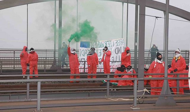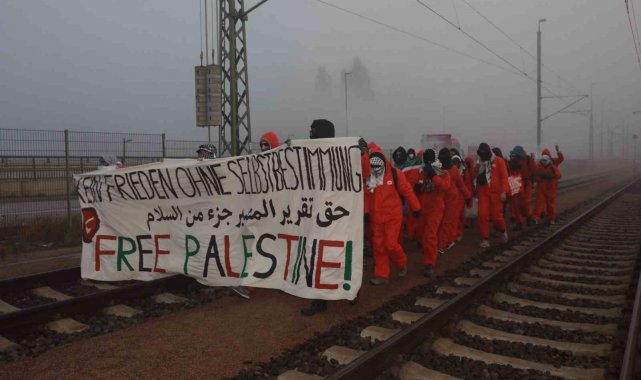 Almanya'da Filistin destekçisi grupların İsrail'e ve Alman hükümetine yönelik eylemleri sürüyor. Almanya'nın Hamburg kentinde bir araya gelen Filistin yanlısı İklim aktivisti grup Ende Gelände (Yeryüzünün Sonu), İsrail'e silah ihracatının durdurulmasını, Alman hükümetinin İsrail'e desteği protesto etmek için ülkenin en önemli limanını kapattı. Sabahın erken saatinde toplanan göstericiler, Hamburg limanına ulaşan demir yolunu trafiğe kapattı. Göstericilerin bir kısmı Altenwerder Damm/Waltershofer Köprüsü bölgesindeki raylara kendilerini zincirledi. Gösteriye katılanların eylemleriyle Filistin'le dayanışma göstermek istediklerini belirtirken, "İsrail'e silah ihracatının derhal durdurulmasını, Filistin işgalinin sona erdirilmesini" talep etti. Göstericiler Alman hükümetine de "Gazze'deki savaş suçlarına verdiği destek" nedeniyle de tepki gösterdi.