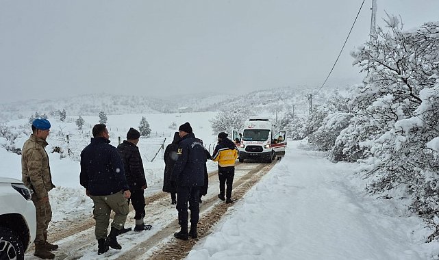 Adıyaman'ın Gölbaşı ilçesinde yoğun bir şekilde devam eden kar yağışından dolayı hastaneye gidemeyen hamile kadının imdadına ekipler yetişti.
