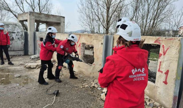 DÜZCE (İHA) – İçlerinde Hatay depreminde 3 aylık hamileyken günlerce enkazda çalışanın da bulunduğu Düzce Arama Kurtarma Derneği'nin (DAKE) kadın gönüllüleri, fedakarlıklarıyla ilham veriyor. Zorlu afet şartlarda kullandıkları ağır arama kurtarma ekipmanlarıyla yoğun mesai harcayan, afetzedelere anne şefkatiyle yaklaşan kadınlar, 8 Mart Dünya Kadınlar Günü'nde 'Biz hep var olalım' mesajı verdi.
