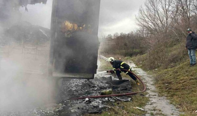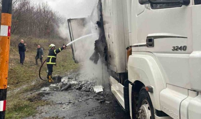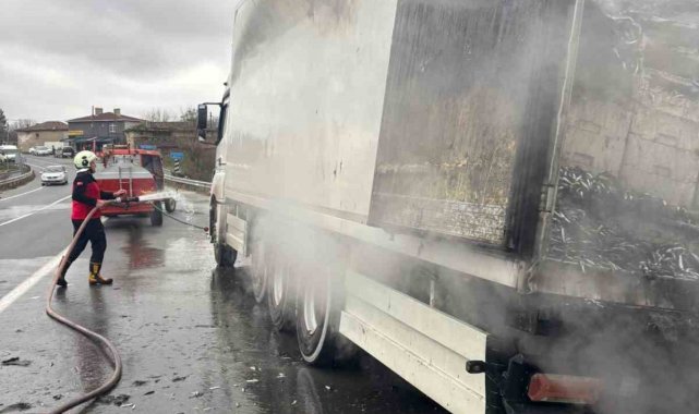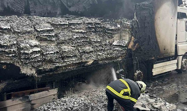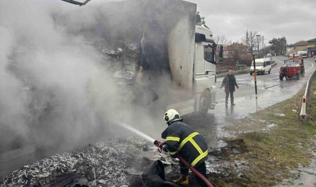 Hamsi yüklü tır alevlere teslim oldu: Dorse kullanılamaz hale geldi