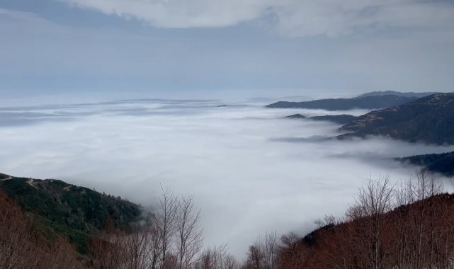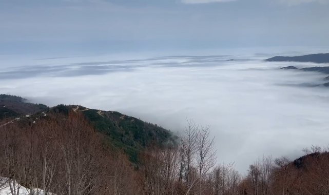 Handüzü Yaylası'nda sis denizi kartpostallık görüntüler verdi.