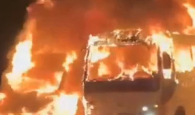 Öte yandan, şüphelilerin minibüsleri kundaklama anları güvenlik kamerasına yansıdı.