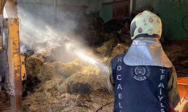Kocaeli'nin Kartepe ilçesindeki harada çıkan yangında, 70 balya saman zarar gördü.