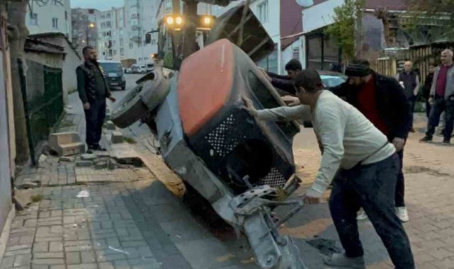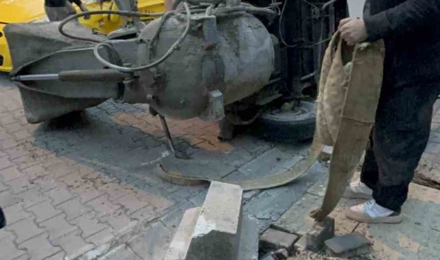 Harç karma makinesi, ticari taksinin üzerine devrildi