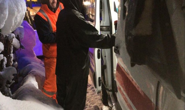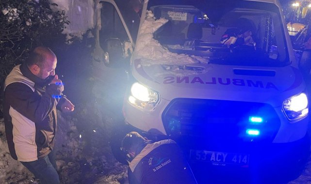 Rize'nin Pazar ilçesine bağlı Subaşı Köyü'nde yaşayan C.İ. isimli vatandaş için 112 Çağrı Merkezi'nden yardım istedi. İhbar üzerine köye sağlık ekipleri sevk edildi. Şehri etkisi altına alan kar yağışı nedeniyle köye ulaşmakta güçlük çeken sağlık ekipleri, kapalı köy yolu nedeniyle ilerleyemedi. Bu kez ambulansın ilerleyebilmesi için bölgede teyakkuz halinde bekleyen Rize İl Özel İdaresi'ne ait iş makinesi ve ekiplerden yardım istendi. Ambulansın önünü açan iş makinesi aracın ilerlemesine yardımcı oldu. Çeki halatı ile iş makinesine bağlanan ambulans köye kadar çekildi. Hastayı alan alarak dönüş yoluna giren ambulans, köyden aşağıya inerken kaymaması için bu kez aracın arka kısmından peşinden takip eden iş makinesine bağlandı. Güvenli bir şekilde açık kara yoluna kadar indirilen ambulans daha sonra yardımsız hareket etmeye başlayarak hastayı tedavisinin tamamlanması için hastaneye getirdi.