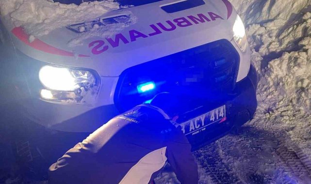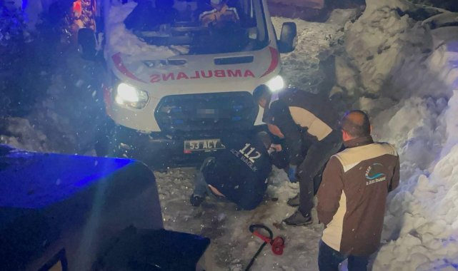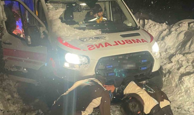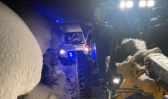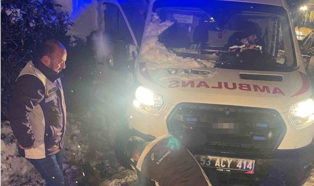 Rize'de hasta ihbarına giden ambulans kar nedeniyle ilerleyemeyince yardımına Rize İl Özel İdaresi ekipleri koştu.