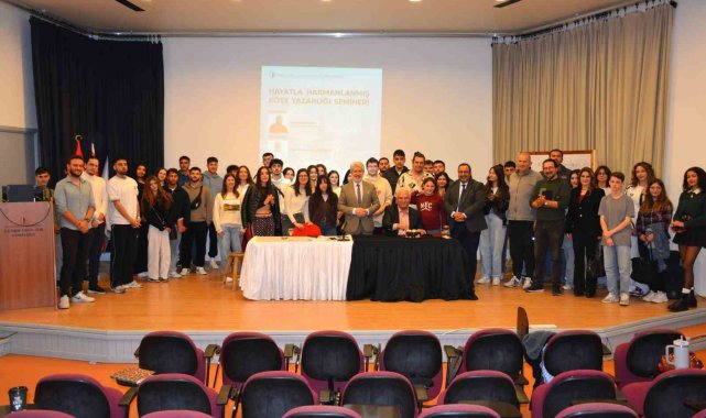 Etkinlikte konuşan deneyimli gazeteci ve köşe yazarı Hasan Hastürer, iletişimin temelinin hayatın kendisi olduğunu vurgulayarak sözlerine başladı. "İletişimin zemini hayattır. Göz göze iletişim kurmayı çok seviyorum; bana göre başarının en etkili yollarından biridir" diyen Hastürer, her insanın parmak izi gibi benzersiz bir üsluba sahip olması gerektiğini söyledi. Küçük bir adada, az nüfuslu bir yerde büyümenin sorumluluk bilincini artırdığını belirten Hastürer, "Bu coğrafyada doğup büyümek, topluma karşı sorumluluğunuzu daha da çoğaltıyor" ifadelerini kullandı. Uzun yıllara dayanan mesleki deneyimine de değinen Hastürer, gençlere "Ne iş yaparsanız yapın, mutlaka kendi imzanızı katın. Yüzlerce yazı da yazsanız, okurlarınız yazının size ait olduğunu hissedebilmeli. Bilim ve bilgi yuvaları doğurgandır; hayatın her alanında bilgi sahibi olun" ifadelerini kullandı.