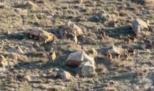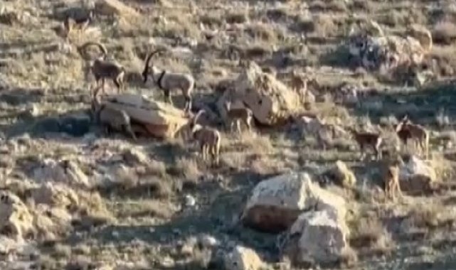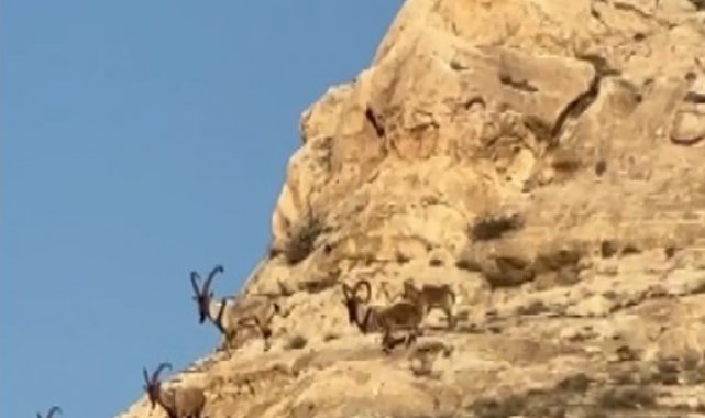 Batman'ın Hasankeyf ilçesinde nesli tükenme tehdidi altında olan dağ keçileri görüntülendi.