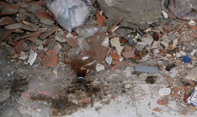 6 Şubat depremlerinden etkilenen ve yıkılan Fidan Apartmanı'na yapışık ve hasarlı olan İpek Sever Apartmanı uyuşturucu yuvasına döndü.