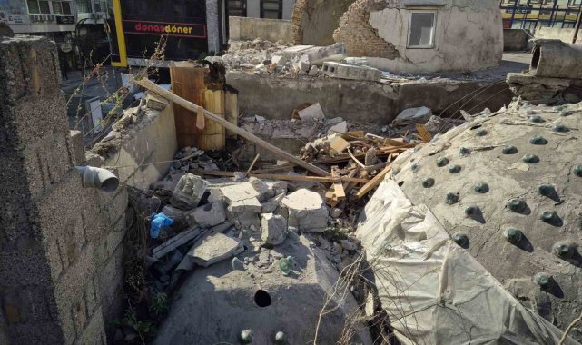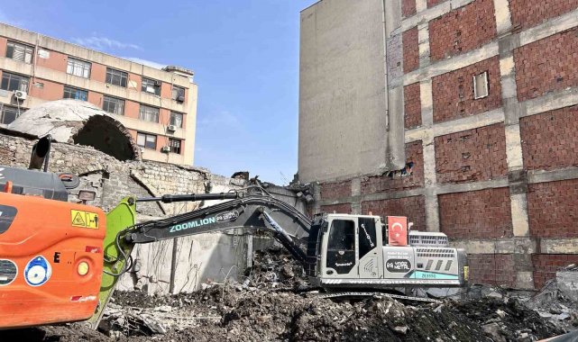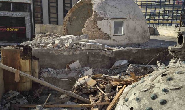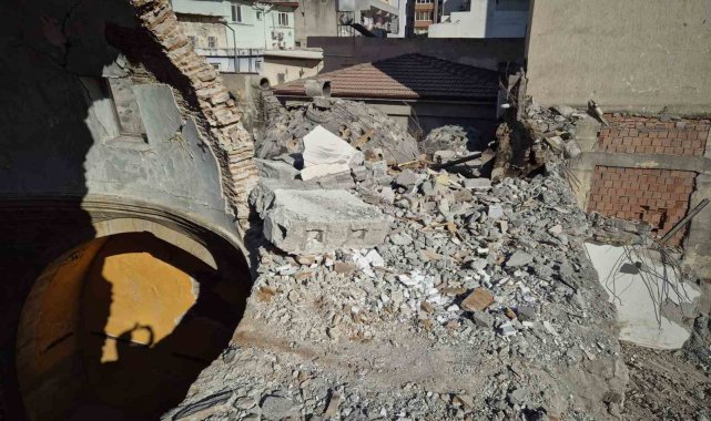 Hatay'ın İskenderun ilçesinde hasarlı bina, yıkım esnasında Osmanlı döneminden kalma tarihi hamamın üzerine devrildi. Olayda hamamın kubbesinde hasar oluştu.
