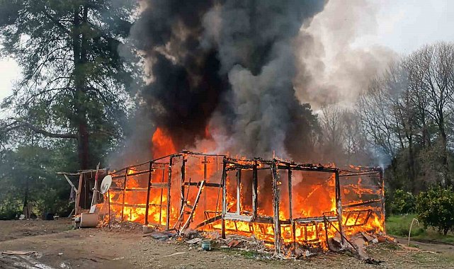 Muğla'nın Köyceğiz ilçesi Beyobası kavşağı mevkiinde hasır üretimi yapılan evde hasırların tutuşması sonrası hasır ev tamamen yandı.