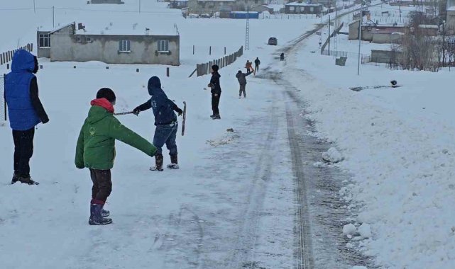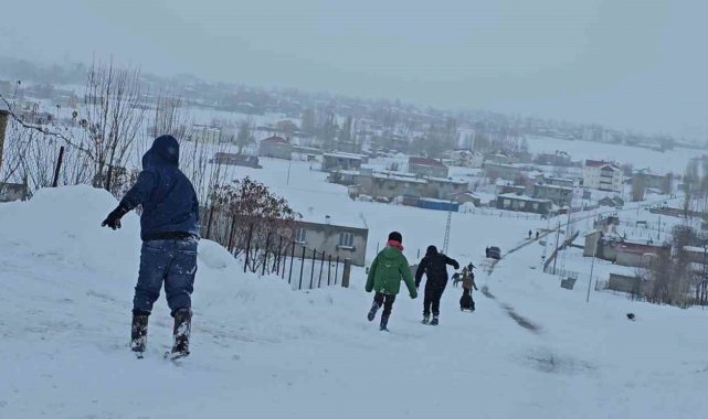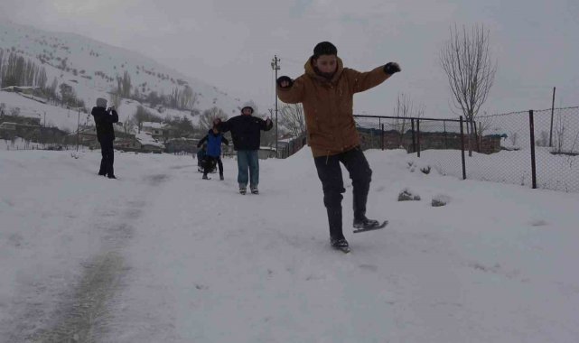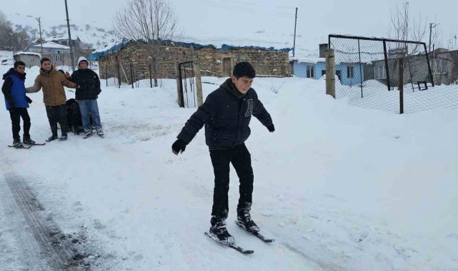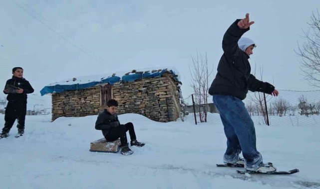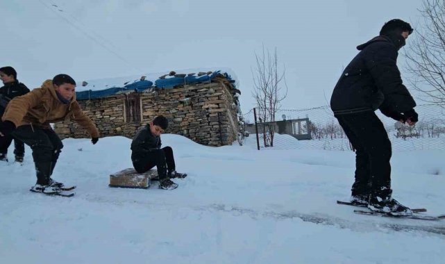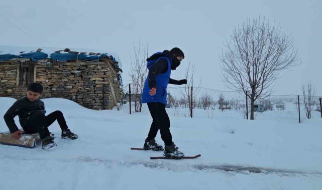 Muş'ta kırsal kesimde etkili olan kar yağışı, çocuklar için eğlenceye dönüştü. Hasköy ilçesine bağlı Dağdibi köyünde yaşayan çocuklar, kendi imkânlarıyla yaptıkları el yapımı demir patenlerle köyün yokuşlu yollarını adeta kayak pistine çevirdi. Renkli görüntülerin oluştuğu anlarda çocukların mutluluğu yüzlerine yansıdı. Zaman zaman yolların kar temizleme ekipleri tarafından açılması nedeniyle üzüldüklerini dile getiren çocuklar, buna rağmen fırsat buldukça farklı alanlarda kayarak karın tadını çıkarmaya devam ediyor.