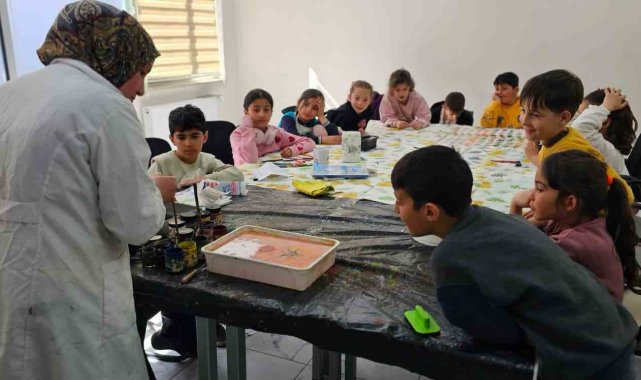Muş'un Hasköy Gençlik Merkezi bünyesinde açılan resim ve ebru kursu, her yaştan vatandaşın yoğun ilgisini görüyor.
