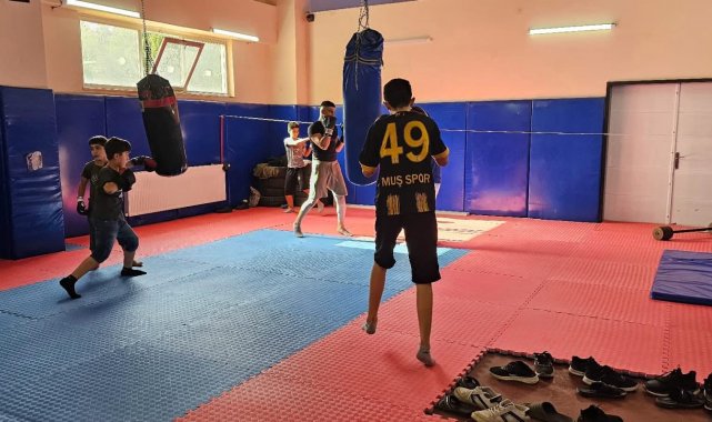 Muş'un Hasköy ilçesinde Gençlik ve Spor Bakanlığı tarafından başlatılan Yaz Spor Okulları faaliyetleri kapsamında boks antrenmanları devam ediyor.