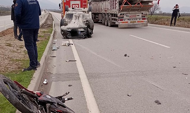 Kaza, Hatay - Gaziantep karayolu Hassa ilçesi Ardıçlı Mahallesi'nde yaşandı. Ali K. idaresindeki 01 ATB 084 plakalı otomobil, kavşakta 31 ALF 050 plakalı motosiklet ve 31 U 5062 plakalı traktörle çarpıştı. Kazada, yaralı motosiklet sürücüsü ve traktör sürücüsü ambulansla hastaneye kaldırıldı. Kaza sonrası tek şeritten sağlanan ulaşım araçlarım çekilmesiyle normale döndü.